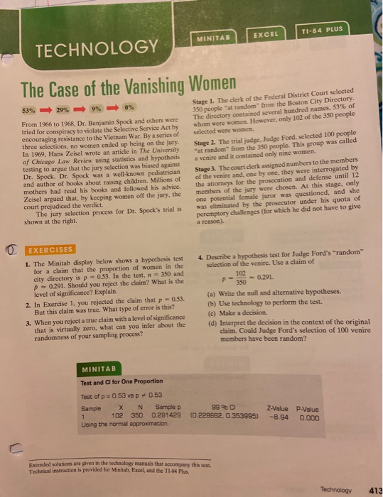 Solved Minitab Excel Th 84 Plus Technology The Case Of The Chegg Com